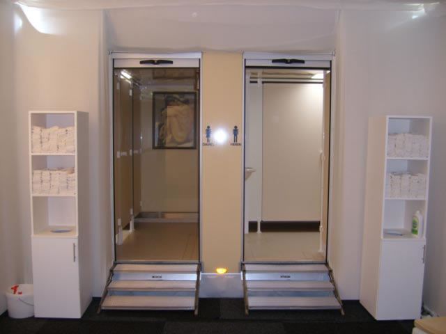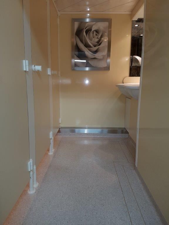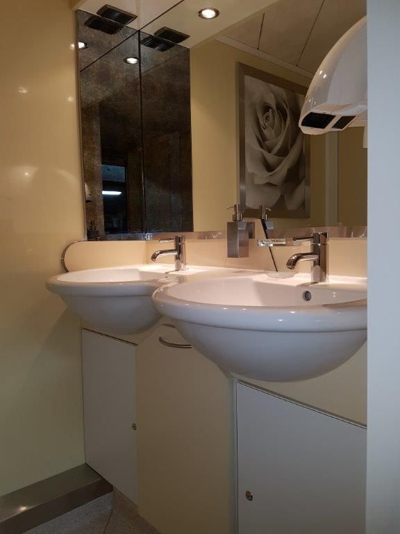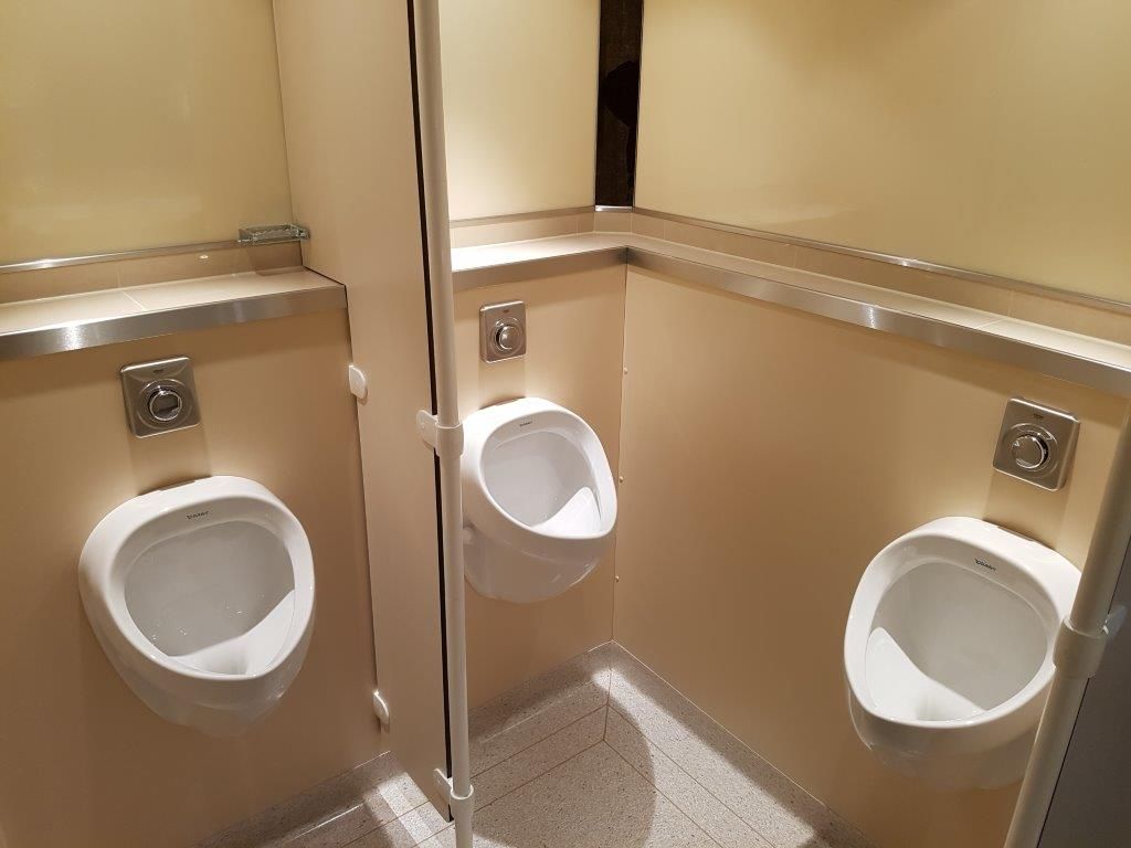 01. Afvoer : buis diameter 110 02. Stroomaansluiting 220 V ~ 03. Wateraansluiting : GK - Koppeling 04. Urinoirs 05. Wastafels 07. Elektrische handdrogers 10. WC 11. Boiler